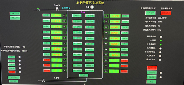 ⑩采用吹灰系统模拟图形式,显示吹灰器系统设备的运行状态。
